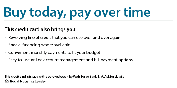 With approved credit through Wells Fargo Bank, N.A., you’ll enjoy: